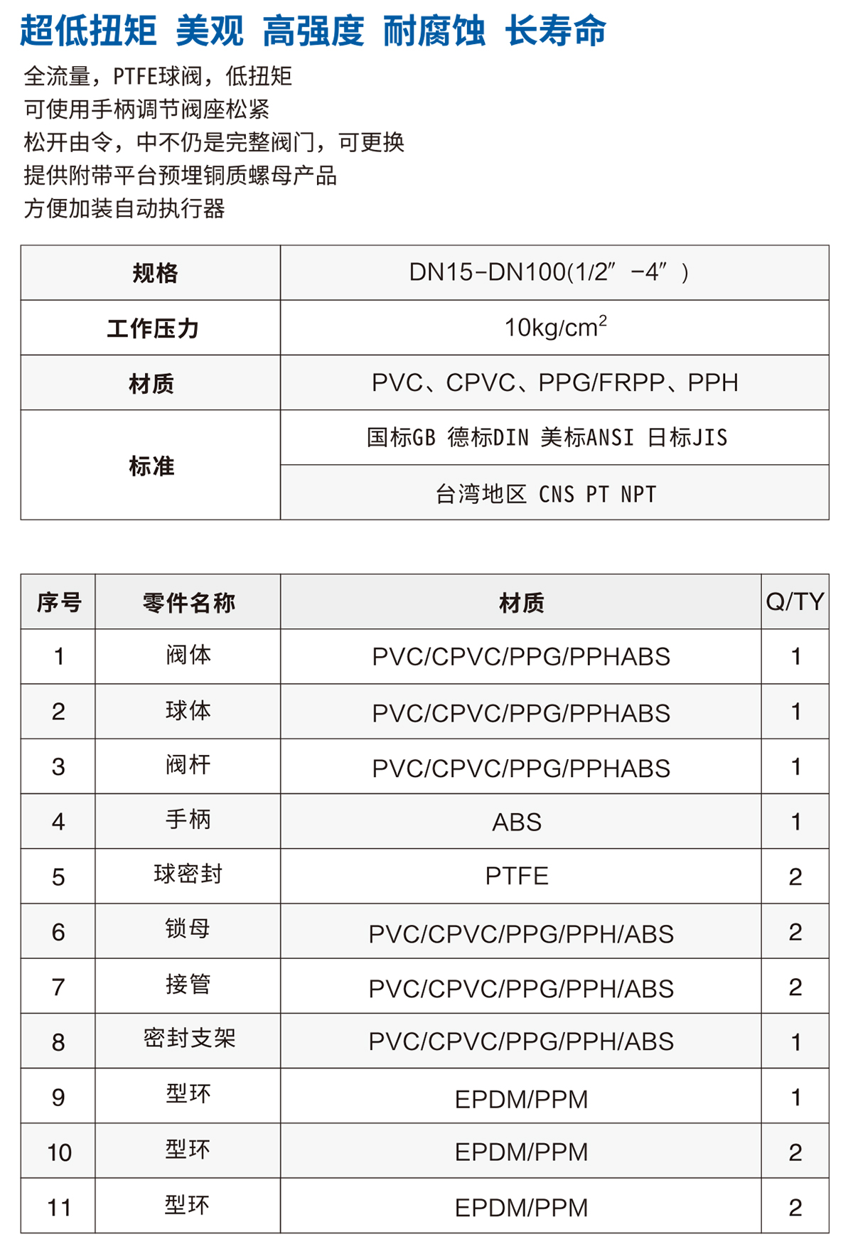 材質(zhì):PVC、CPVC、PVDF、FRPP、PPH