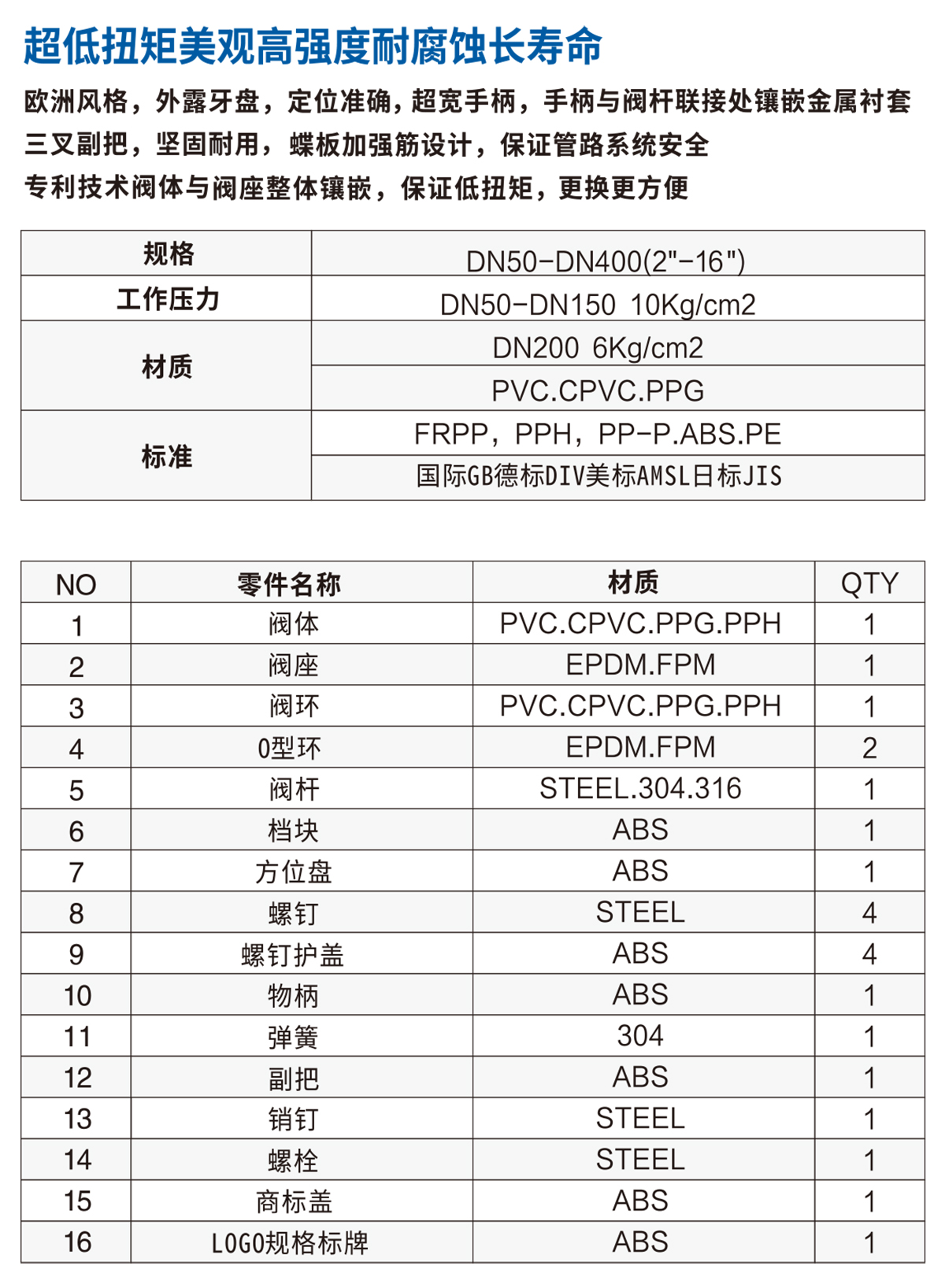 材質(zhì):PVC,CPVC,PPG,F(xiàn)RPP,PPH,PP-P,ABS,PE