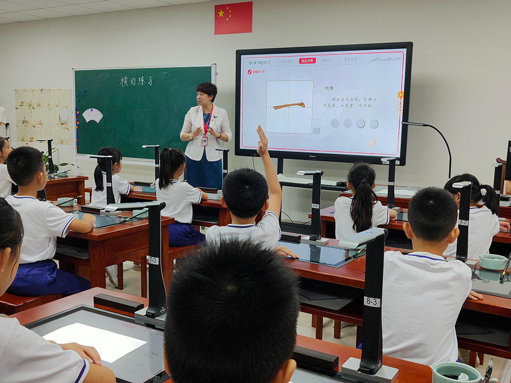 在6月下旬的書法特色教育創建與管理觀摩學習活動中,老師們觀摩了沙面小學姚丹校長執教的書法示范課《橫的練習》,切身感受到吉星智慧書法課堂的魅力,體驗科技與書法的結合。
