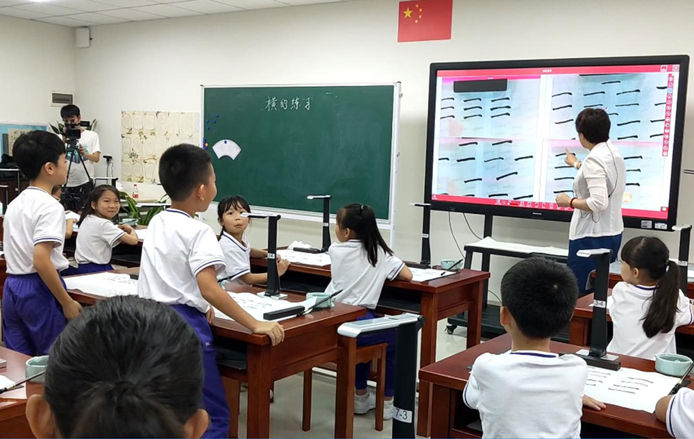 大屏幕上,同學們能夠清晰地看到其他同學的作品。通過對比教學,同學們能夠看出自己與其他同學書寫的不同,老師也可以即時掌握同學們的書寫情況以及對課程的理解,輔以針對性的指導。